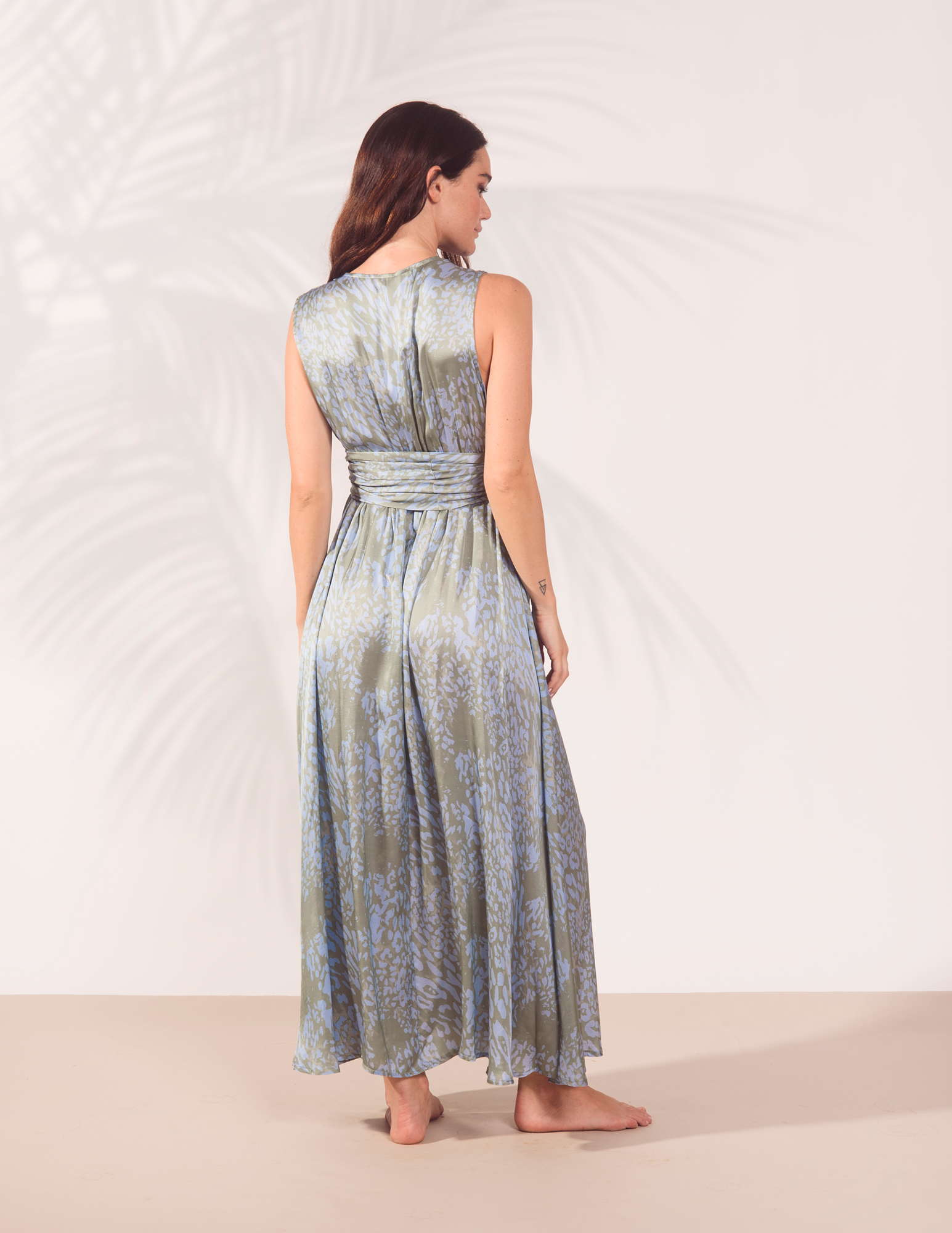 ABITO LUNGO ANIMALIER AZZURRO-VERDE
