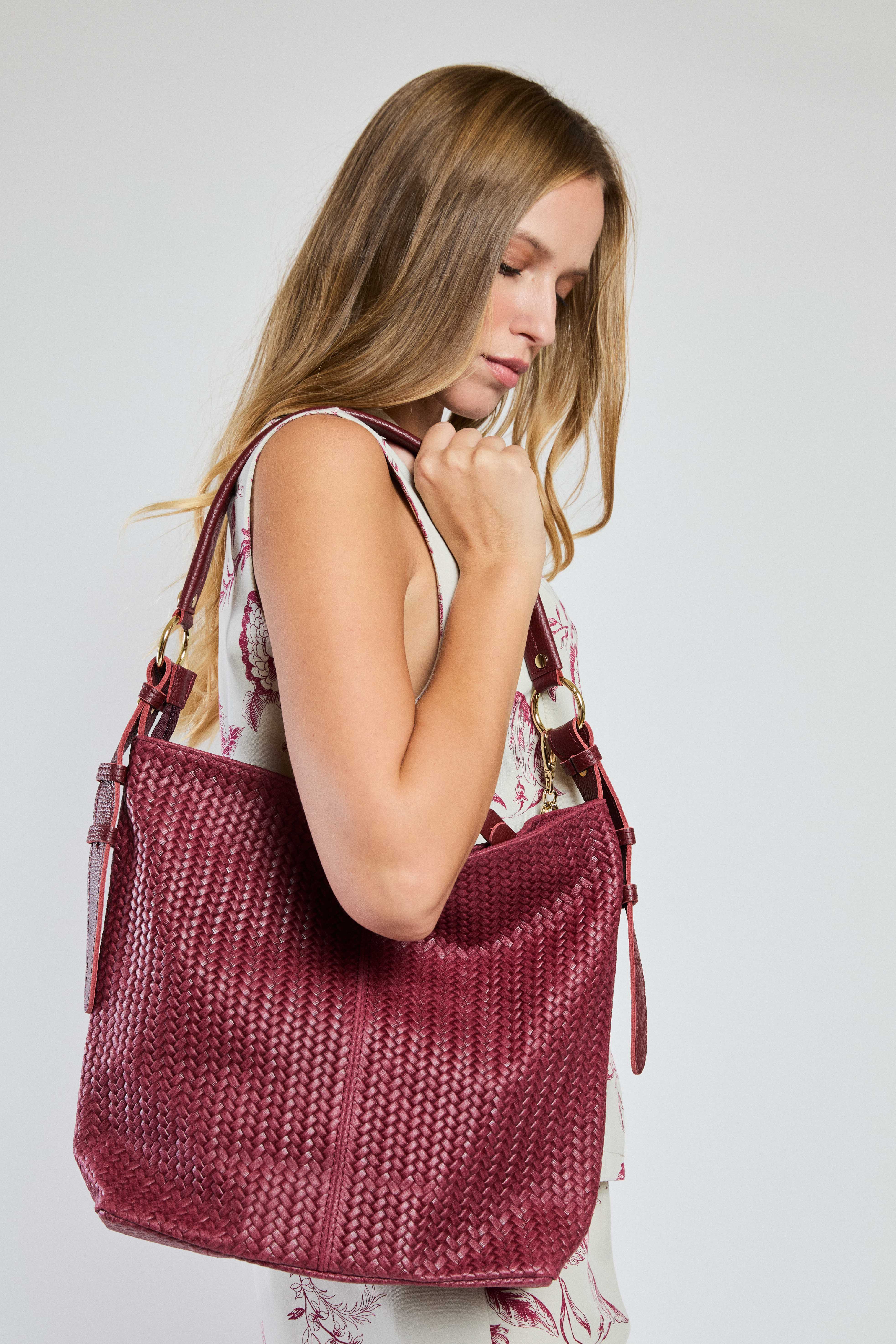 BORSA PELLE INTRECCIATA BORDEAUX