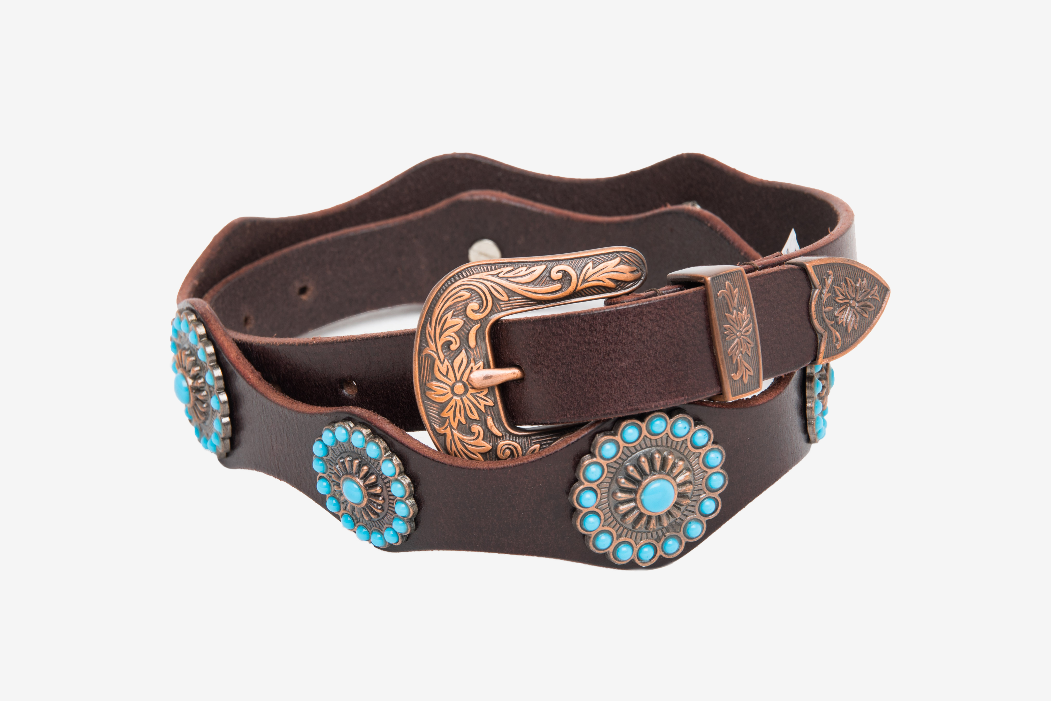 CINTURA CUOIO BORCHIE E PIETRE TURCHESI