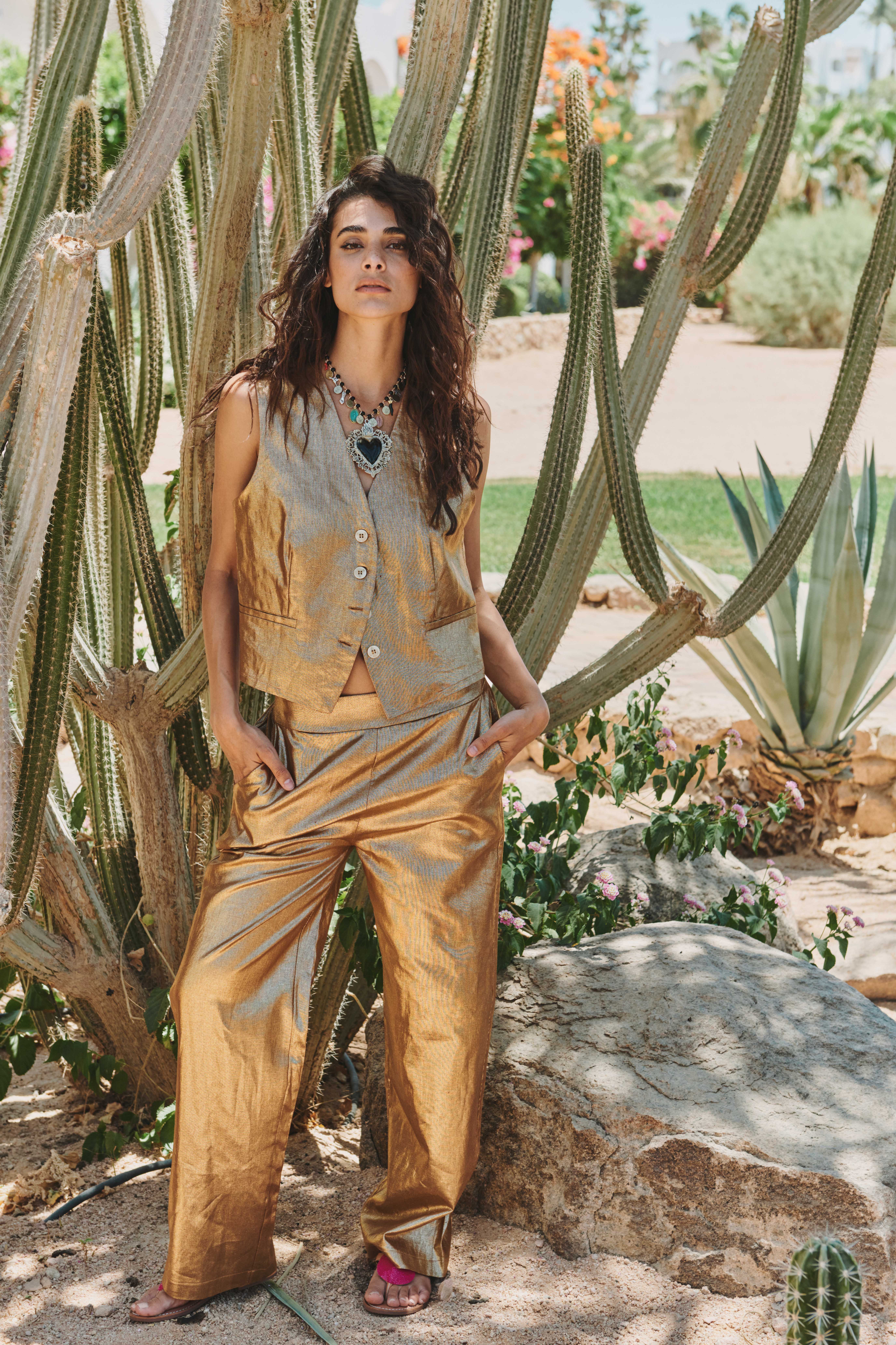 COATED LINEN TROUSERS GOLD