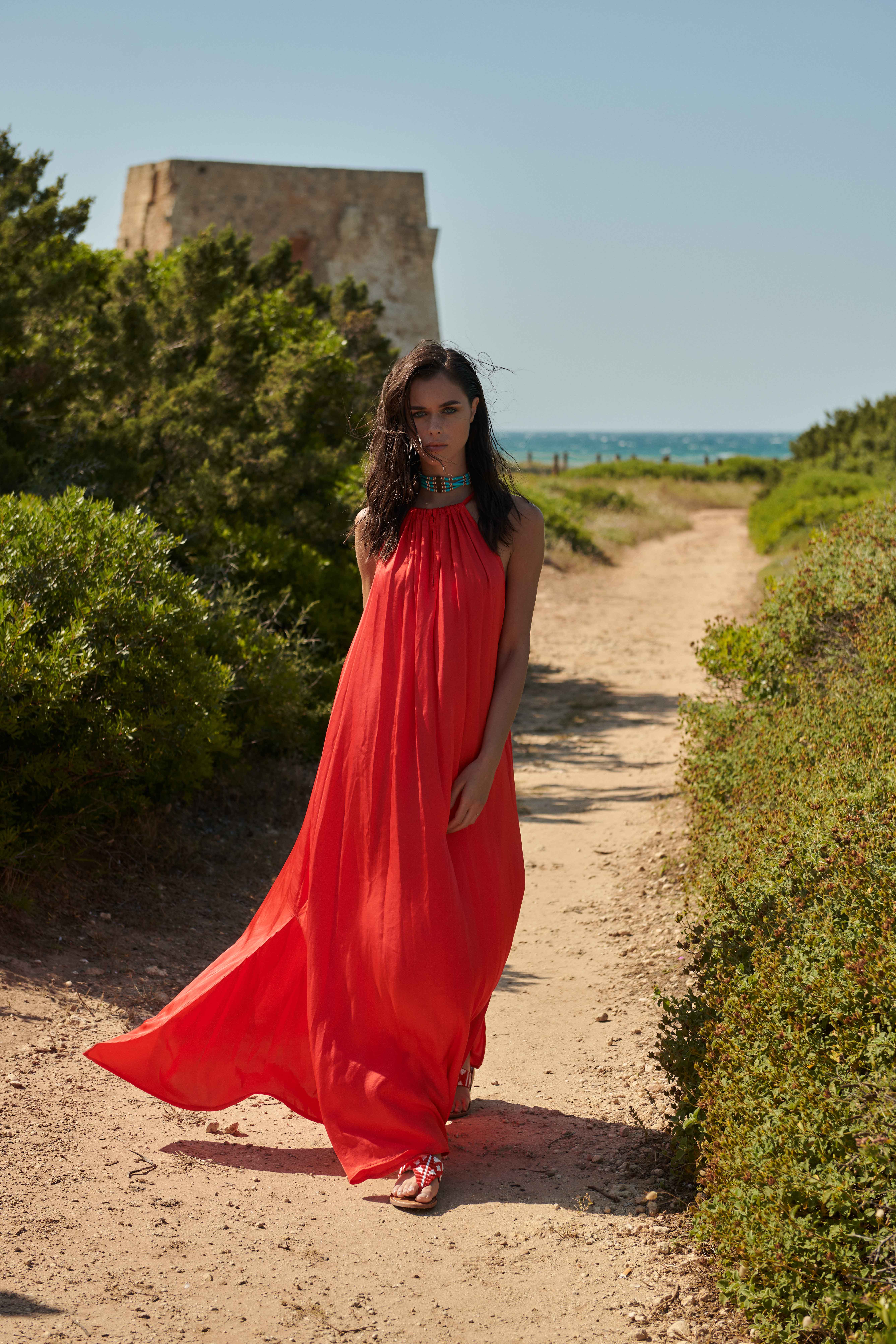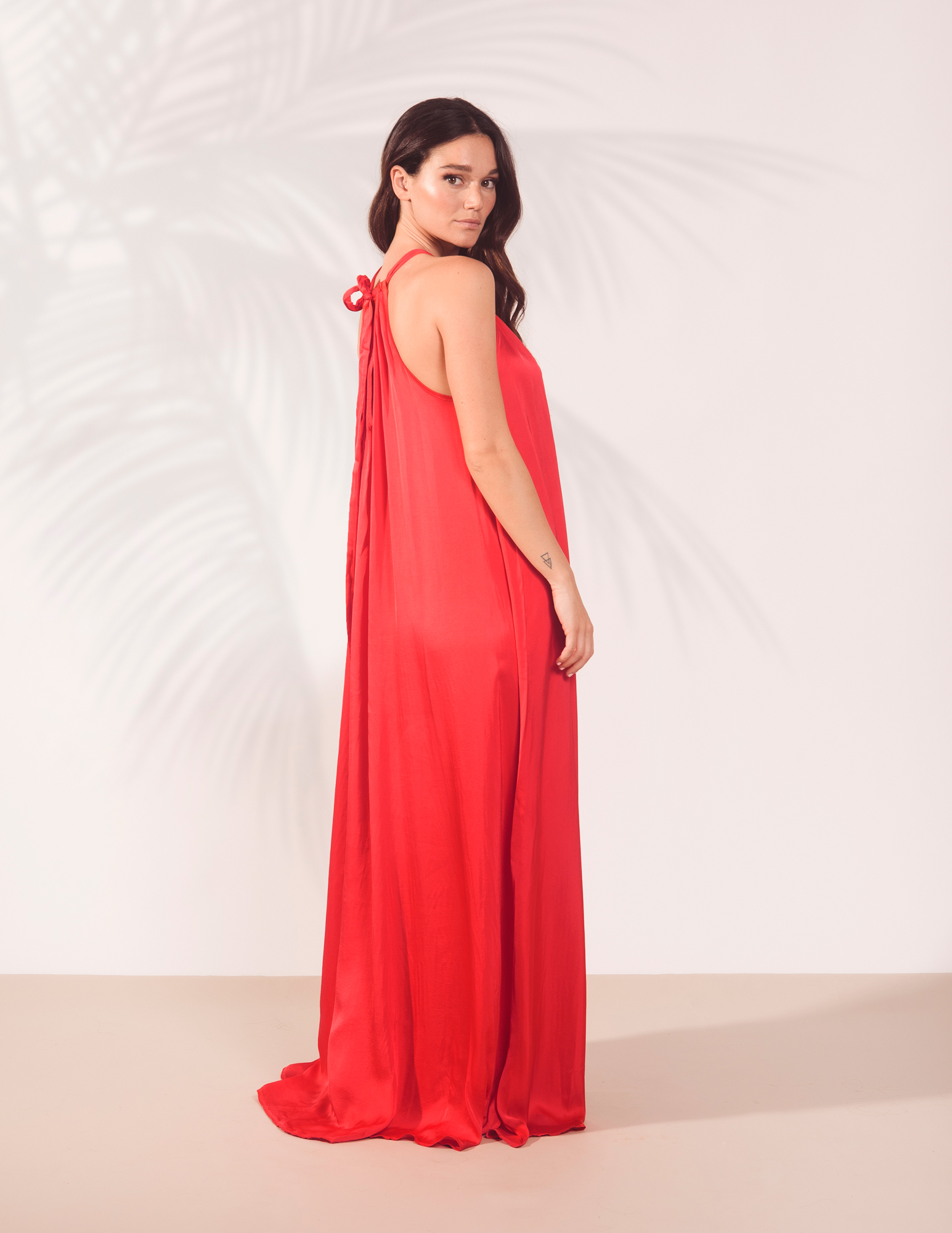 LONG DRESS WITH AMERICAN NECK SATIN RED