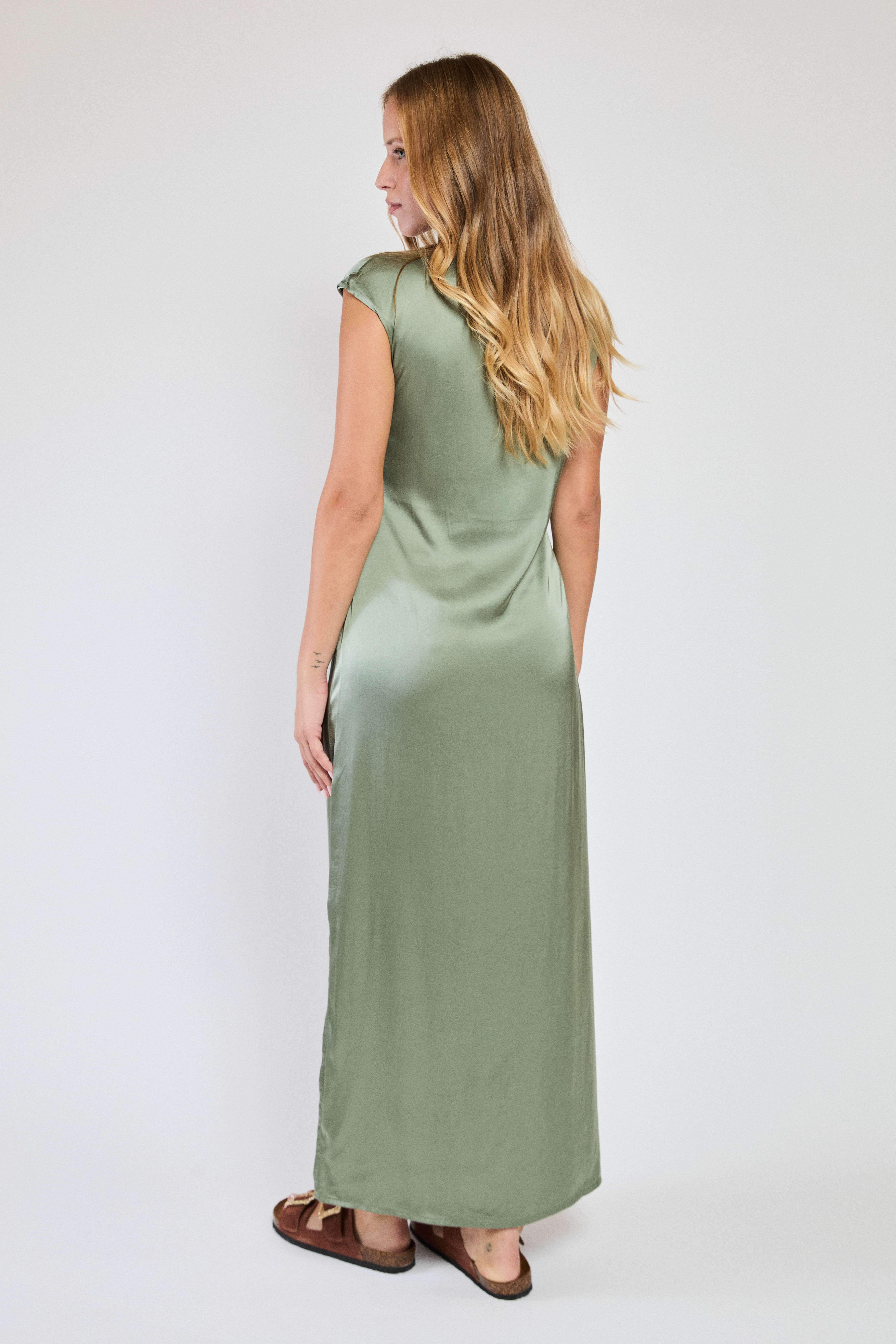 LONG SLEEVELESS SATIN DRESS MILITARY