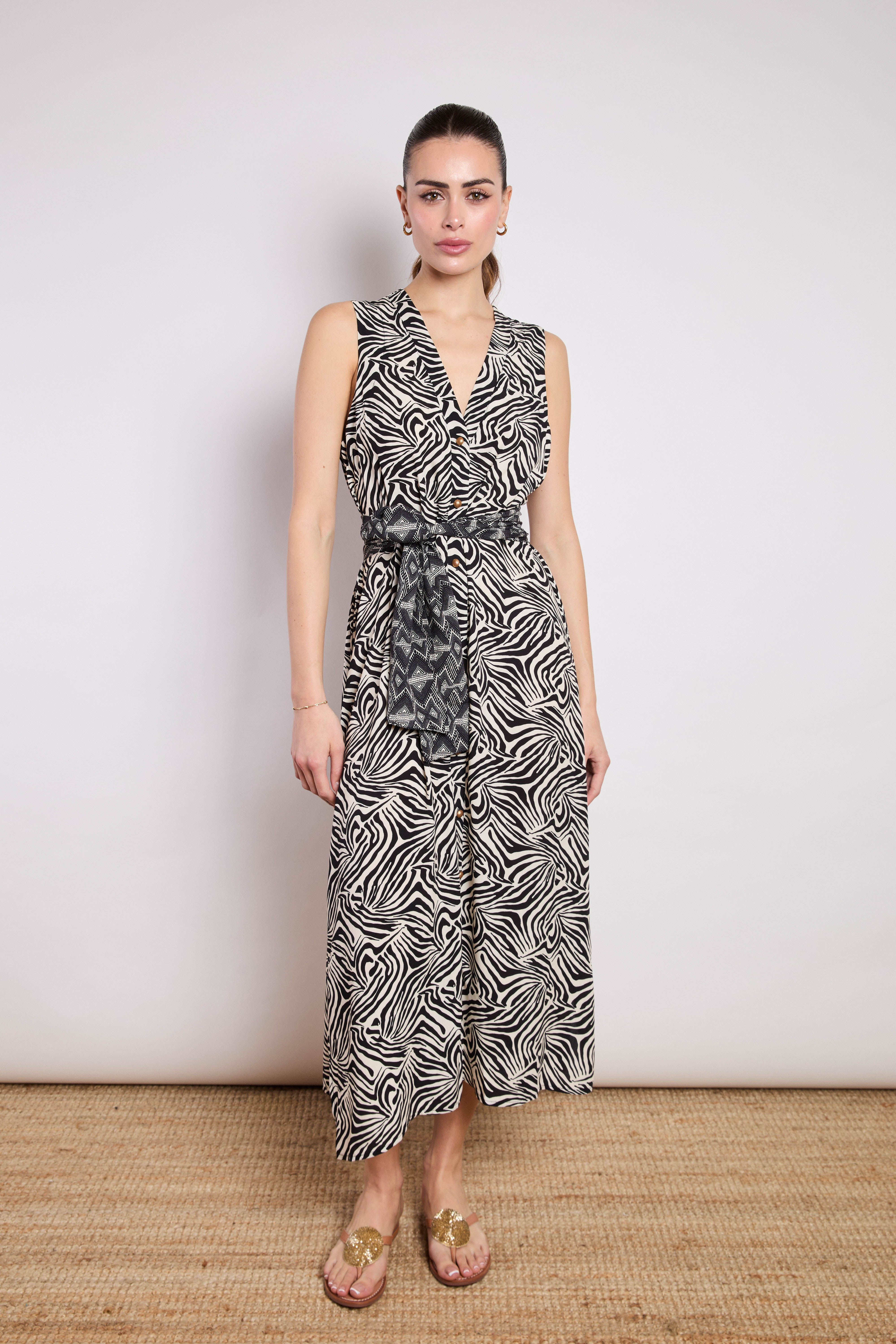 MIDI ANIMAL PATTERN CHEMISIER BLACK