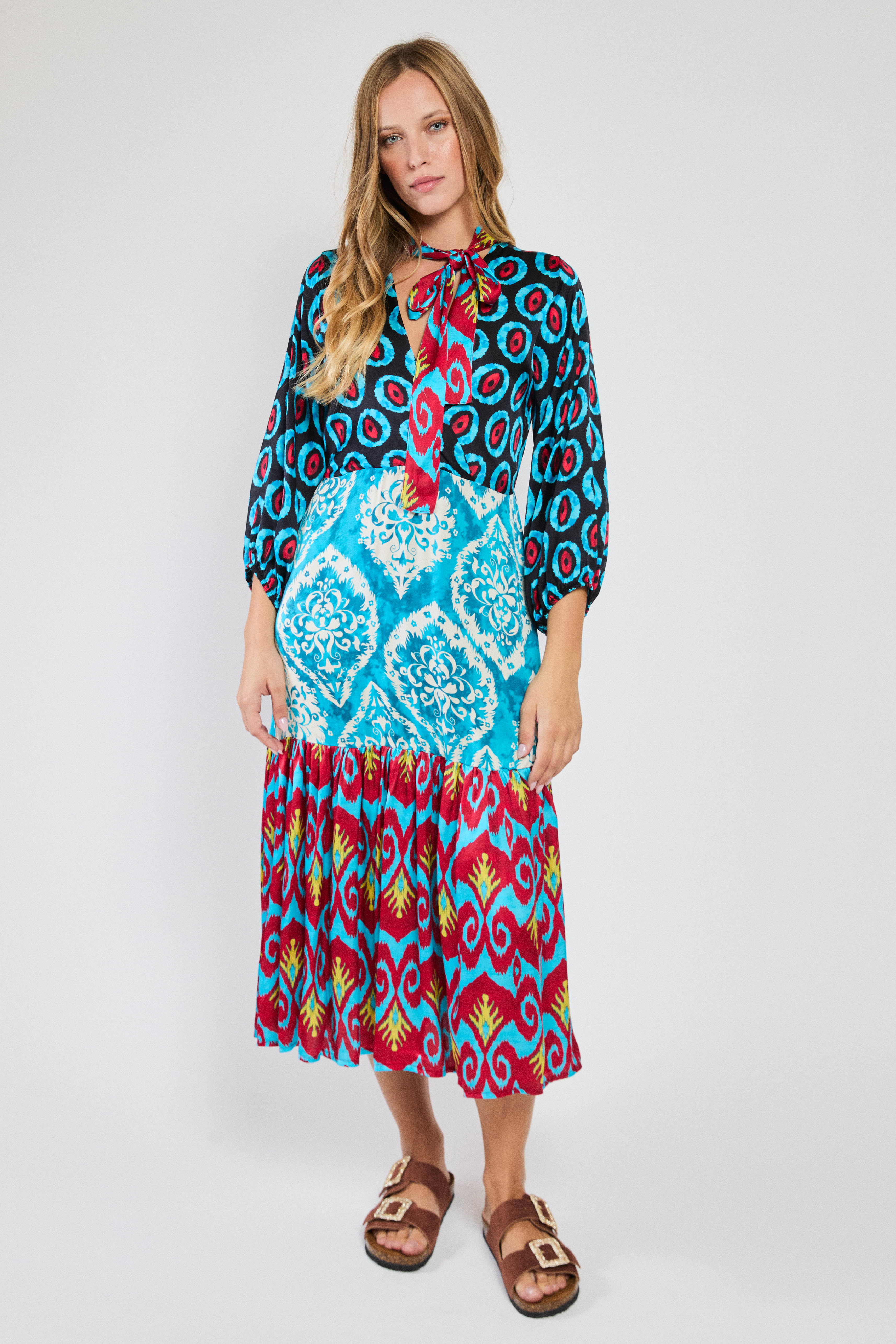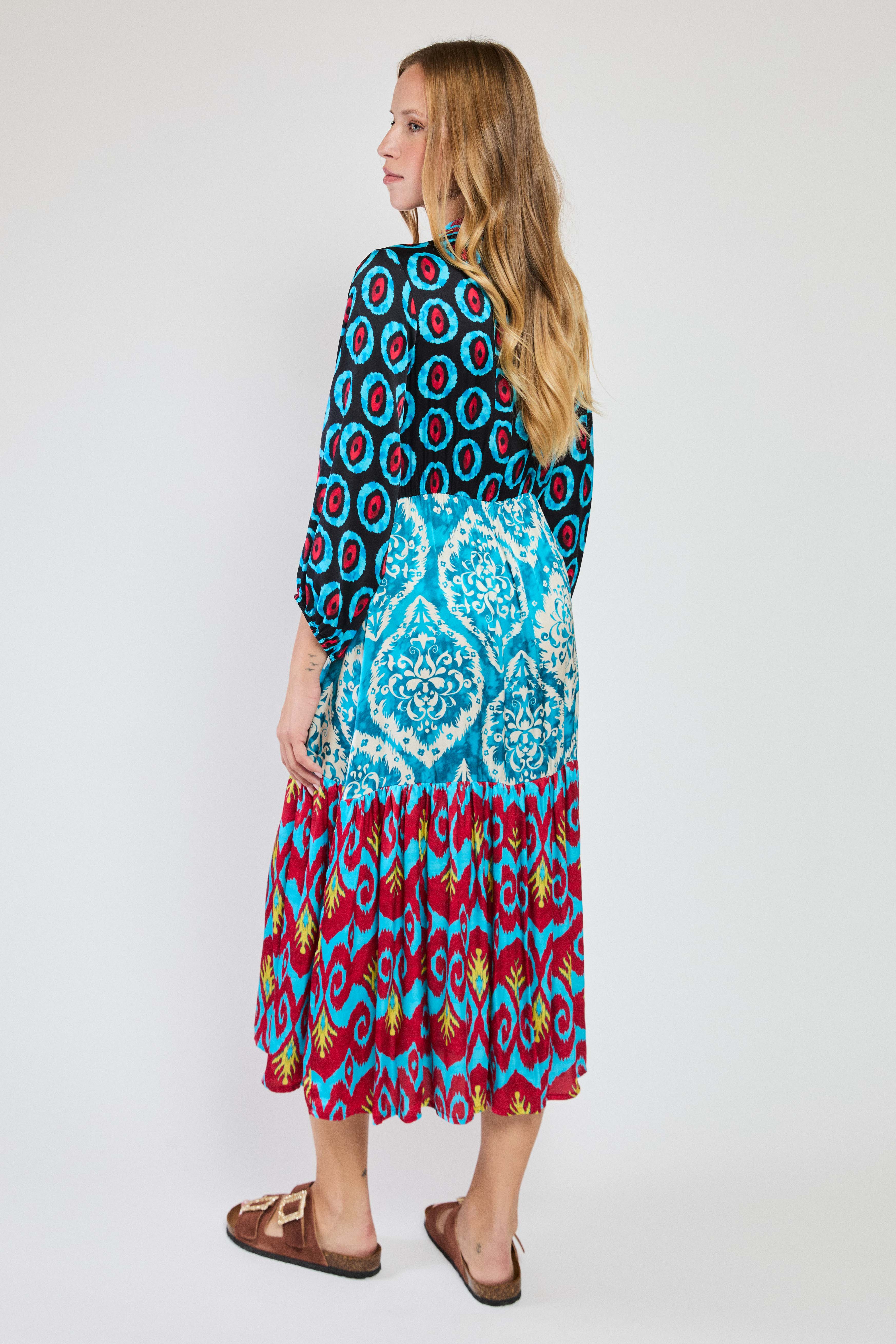 MIDI PATCH DRESS MULTICOLOR